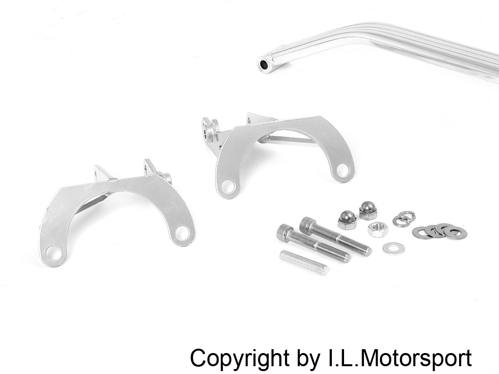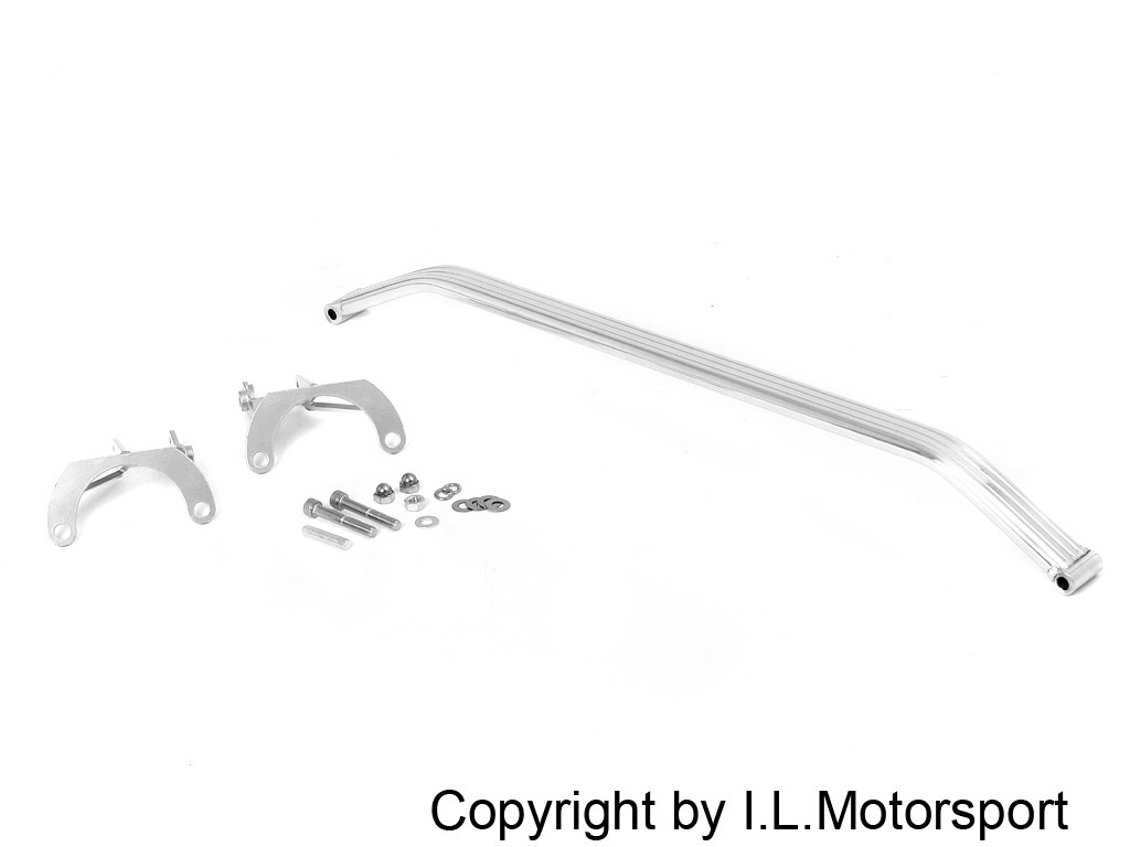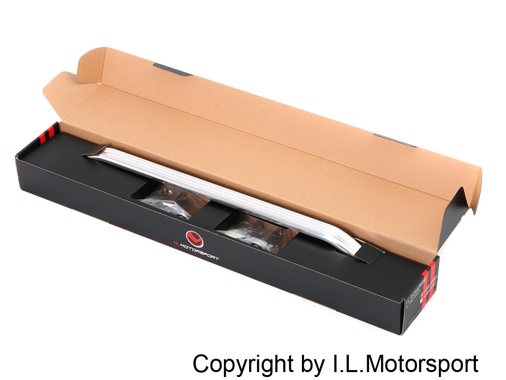Original I.L. Motorsport product: a polished aluminum strut brace with an integrated brake master cylinder motion reducer. This upgrade improves handling, reduces body roll in corners, and gives you a much firmer, more precise brake pedal feel. Suitable for both left- and right-hand drive MX-5 models.